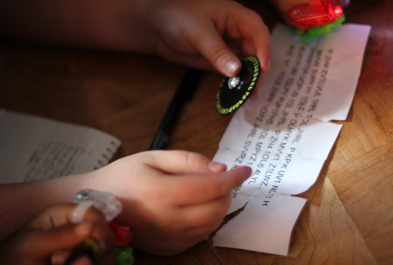 The kids decoded the final message as a team, using their decoder rings. The message revealed that there was a fingerprint on the candlestick left by the murderer. They matched the fingerprint to the suspect dossiers to reveal the cake thief.