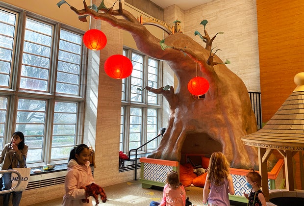 Kids can curl up with a book inside Cotsen's Bonsai tree house,