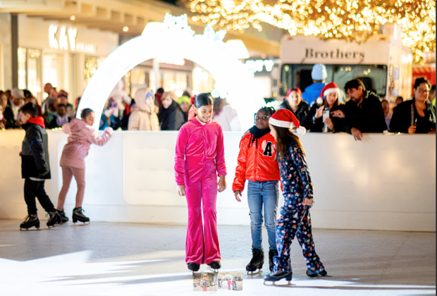 The synthetic-surface rink returns for another season, ideal for young or beginner skaters. $12 admission includes skates and a one-hour session. Themed character nights and private rentals are available.